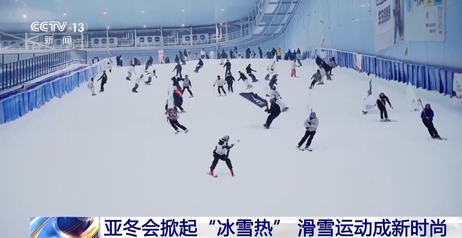 總臺記者 趙雄:我現(xiàn)在是在我國西南地區(qū)最大的室內(nèi)滑雪場,這里常年的溫度是零下6℃。在現(xiàn)場我們看到一共有六個不同的雪道,涵蓋了初、中、高各個不同的階段。不僅如此,在這里還有一個5000㎡的冰雪樂園。受亞冬會的影響,越來越多的人會選擇到這里來體驗冰雪樂趣。