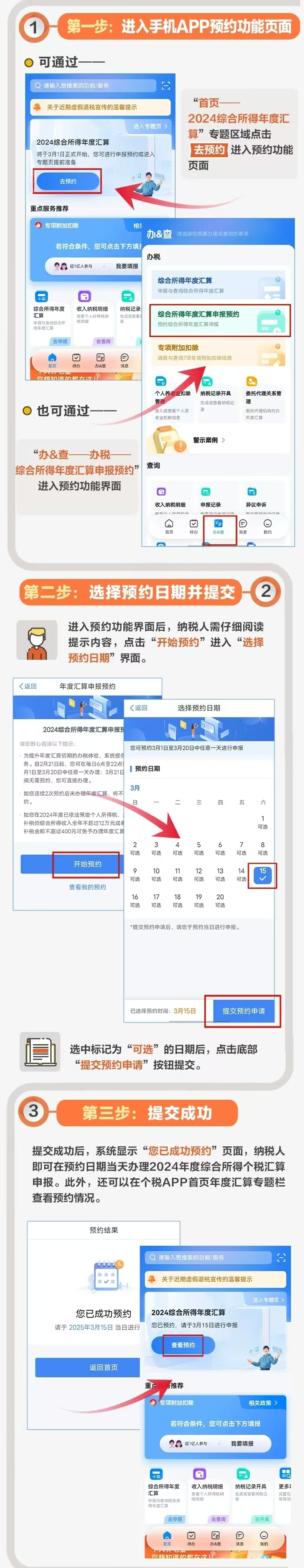 2025年3月1日起,2024年度個稅匯算正式開始。明天(2月21日)起,可預(yù)約辦理年度匯算。如何預(yù)約?哪些人需要辦理?一文看懂↓