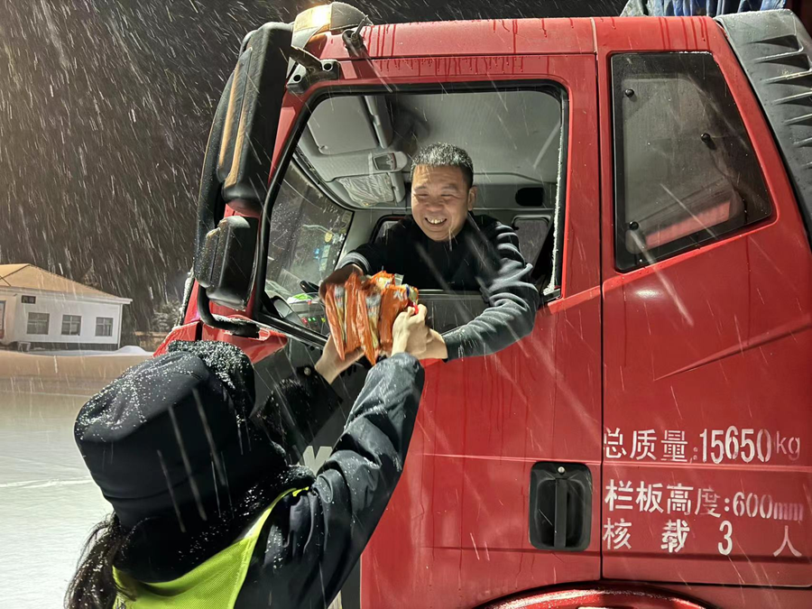 “司機(jī)之家”工作人員頂風(fēng)冒雪