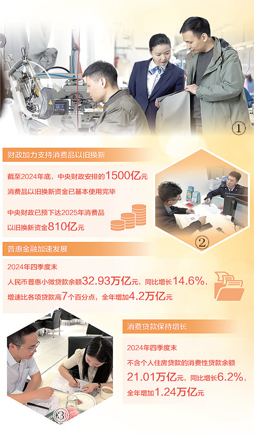 以舊換新拉動市場銷售增長、服務零售保持較快增長、交通出行類服務零售額實現(xiàn)兩位數增長……2024年,社會消費品零售總額487895億元,比上年增長3.5%。亮點紛呈的消費成績單背后,財稅金融發(fā)揮了重要作用。