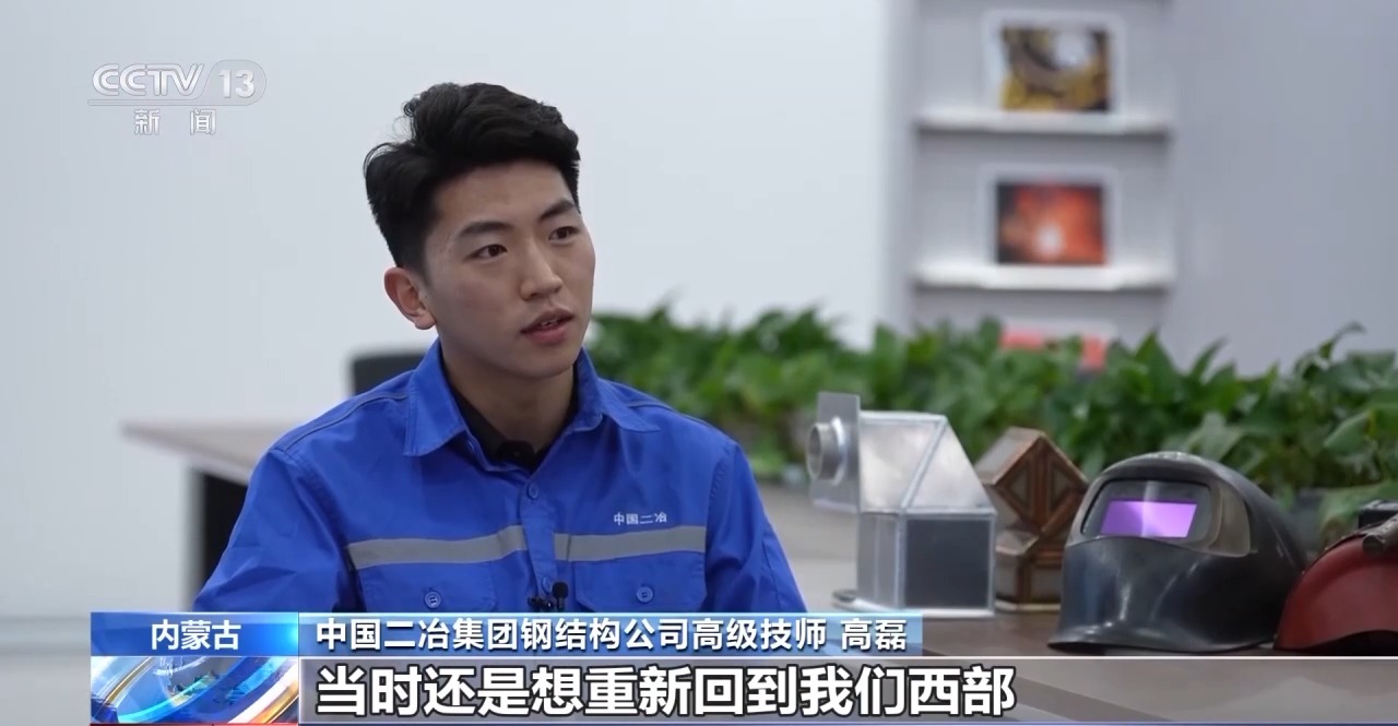 中國(guó)二冶集團(tuán)鋼結(jié)構(gòu)公司高級(jí)技師 高磊:我是從包頭學(xué)到的本領(lǐng)、學(xué)到的技術(shù),當(dāng)時(shí)還是想重新回到我們西部,回到內(nèi)蒙古。在這種條件下,通過(guò)專業(yè)性的技術(shù)人才的引進(jìn),對(duì)我也是一個(gè)更好的挑戰(zhàn)和一個(gè)更好的機(jī)遇和平臺(tái)。