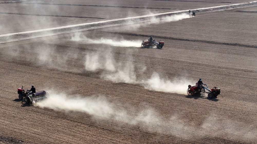 近日,隨著天氣逐漸轉暖,寧夏銀川市賀蘭縣各鄉(xiāng)鎮(zhèn)積極推進春耕生產工作。 新華社記者 王鵬 攝