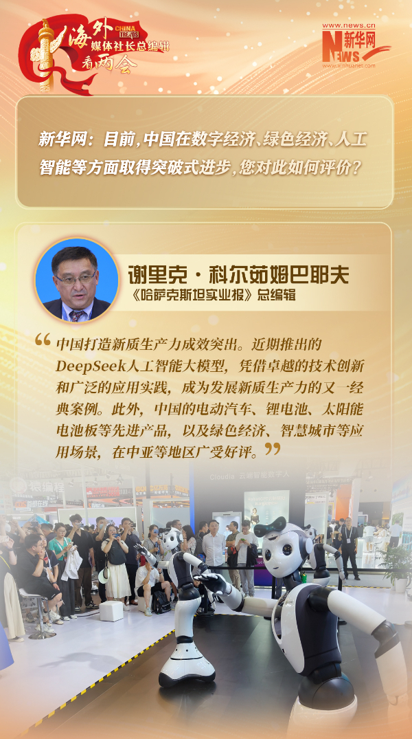 本期報道中,《哈薩克斯坦實業(yè)報》總編輯謝里克·科爾茹姆巴耶夫表示,中國提出的共建“一帶一路”倡議為哈中合作開辟了新天地,期待哈中兩國未來共同努力,在推動基礎(chǔ)設(shè)施建設(shè)、發(fā)展數(shù)字經(jīng)濟、打造文化教育等領(lǐng)域合作新平臺上取得新成果。