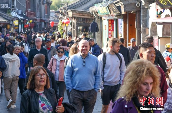 資料圖:北京什剎海地區(qū),外國游客在胡同內(nèi)參觀游覽。 中新社記者 賈天勇 攝