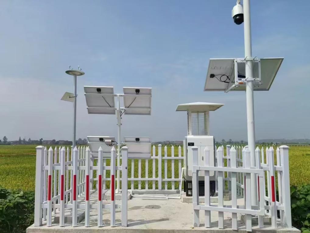 常德市桃源縣金鳳橋村智慧農(nóng)田里的氣象觀測(cè)站和智能蟲情測(cè)報(bào)站。(受訪者供圖)