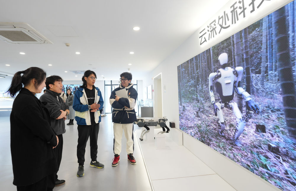 3月1日,在杭州宇樹科技有限公司的產(chǎn)品展示中心,人形機(jī)器人和四足機(jī)器人在工作人員控制下做動(dòng)作。新華社記者 翁忻旸 攝