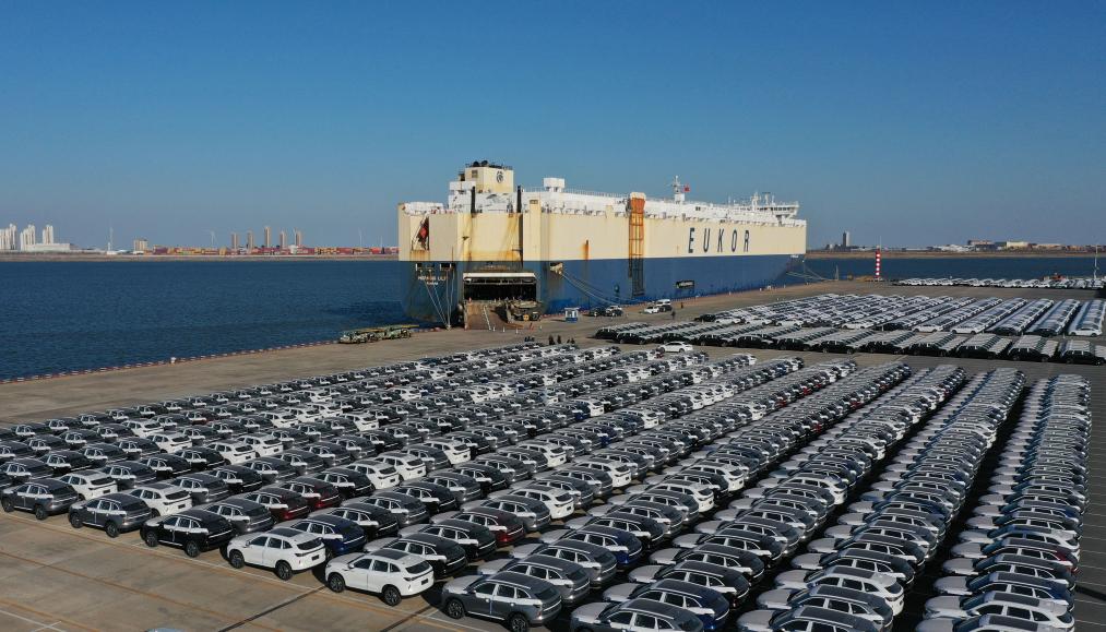 2025年2月25日,來自京津冀地區(qū)的超4000輛國產(chǎn)自主品牌汽車在天津港環(huán)球滾裝碼頭等待裝船發(fā)往海外(無人機(jī)照片)。新華社記者 趙子碩 攝