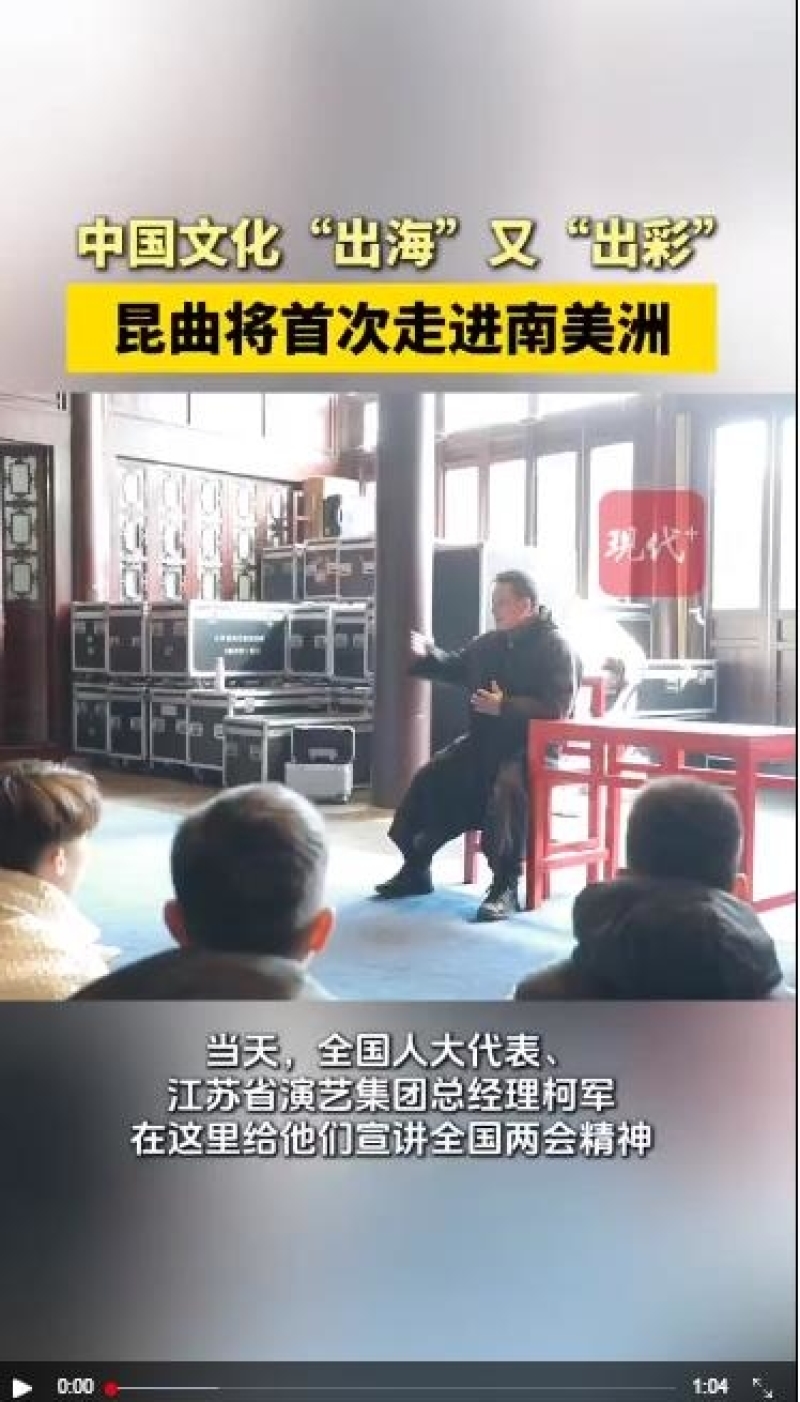 傳統(tǒng)戲曲表達(dá)了真善美的情感,既能做到古今對(duì)話,又能實(shí)現(xiàn)中外共情。今年全國兩會(huì)上,如何讓文化“出?!庇帧俺霾省背蔀闊嶙h話題。從2016年的“湯莎會(huì)”,到在巴黎舉辦的“文明遇·鑒:中國昆曲江蘇周”,觀眾座無虛席,大家反響熱烈;青春版《牡丹亭》,20多年演出500多場(chǎng),收獲觀眾百萬,無數(shù)年輕人被“圈粉”,一出戲普及了一個(gè)劇種。江蘇省演藝集團(tuán)用一次又一次成功闡釋國風(fēng)真“頂流”……接下來,昆曲還將首次走進(jìn)南美洲??萝娊榻B,3月27日是世界戲劇日,今年相關(guān)活動(dòng)將在巴西開展?!敖衲晔巧吣?,我們甄選了《白蛇傳》這一劇目。與此同時(shí),我們還將帶上昆曲《牡丹亭》,讓更多的國外友人欣賞到中國戲曲的美和魅力。”