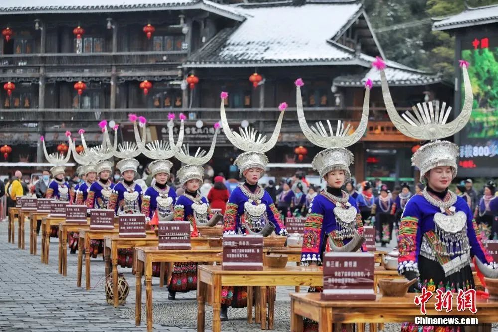 貴州西江苗寨十二道攔門酒。雷山縣融媒體中心供圖