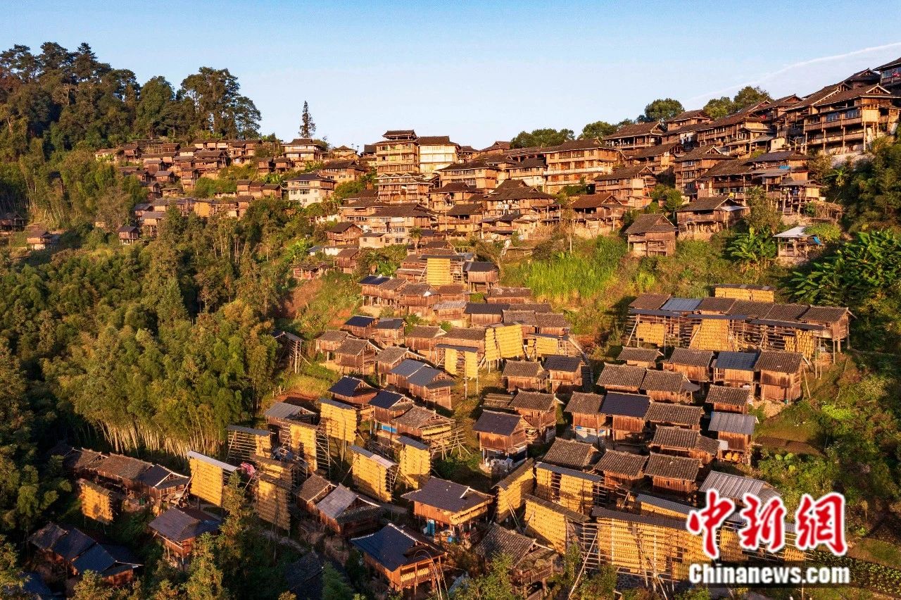 貴州省從江縣丙妹鎮(zhèn)岜沙苗寨禾晾“曬秋”。吳德軍 攝