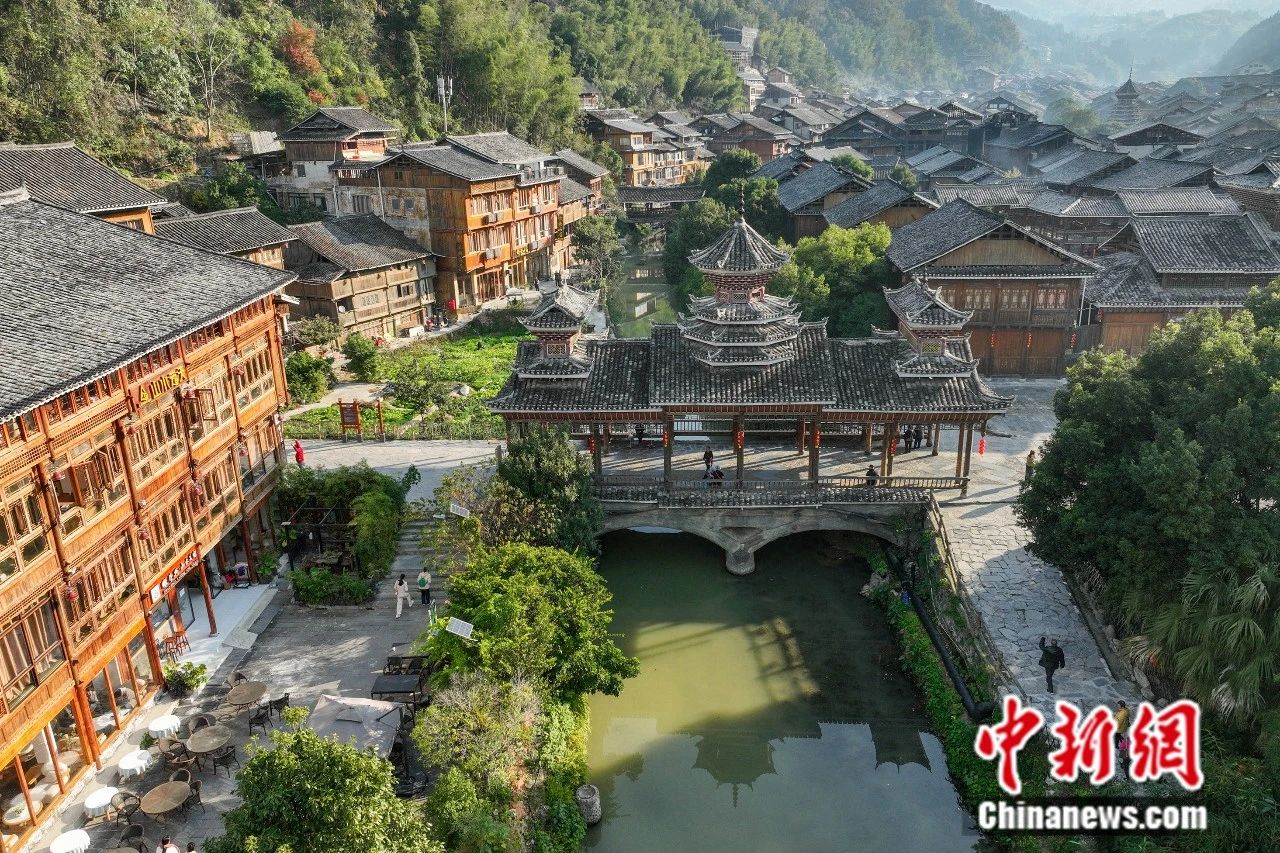 游客在貴州西江千戶苗寨游玩。中新社記者 瞿宏倫 攝