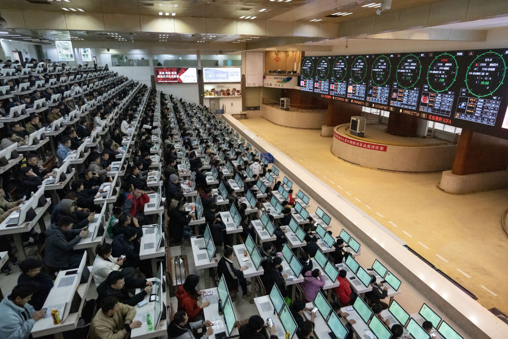 這是2025年1月22日拍攝的昆明國際花卉拍賣交易中心拍賣大廳,拍手們在競拍鮮花。新華社記者 陳欣波 攝