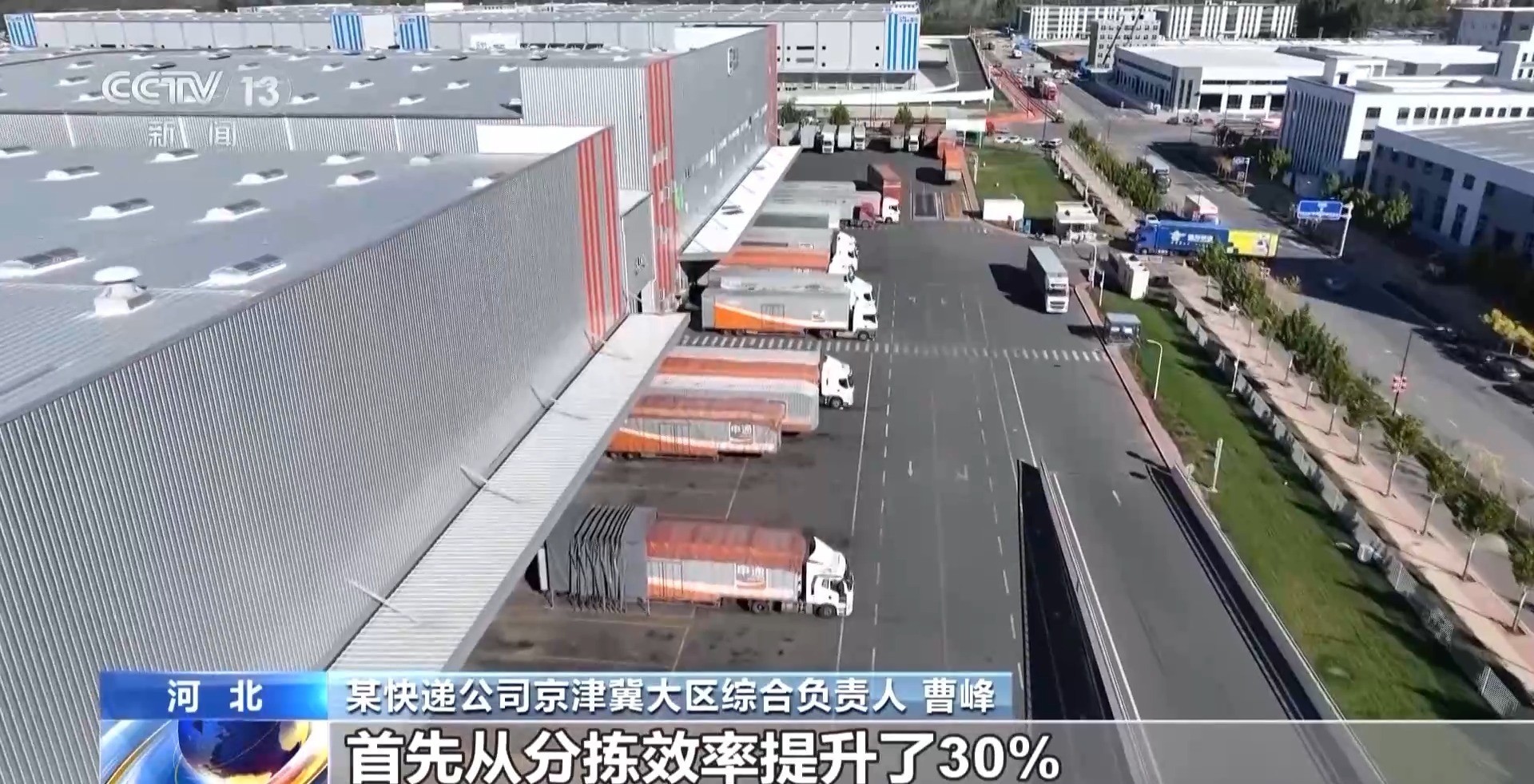 在廊坊固安的這家快遞公司華北轉(zhuǎn)運(yùn)中心,近百個(gè)進(jìn)出港卸貨口同時(shí)操作,全鏈路數(shù)智化設(shè)備同步運(yùn)轉(zhuǎn)。大量快遞包裹在運(yùn)輸帶上被快速掃描、分揀,整個(gè)過(guò)程都在智能管理系統(tǒng)的調(diào)配下完成,最快僅需10分鐘便可完成裝車。