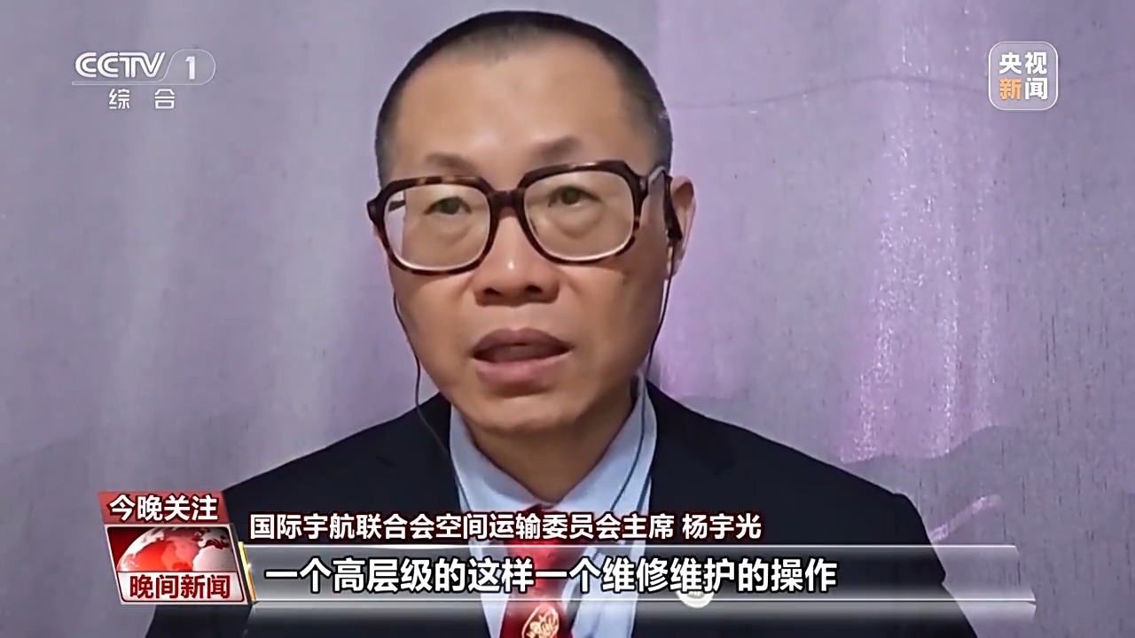 國際宇航聯(lián)合會空間運輸委員會主席 楊宇光:我們已經開始對空間站高層級的維修維護操作,同時這些活動本身也在為我們未來更復雜、更具挑戰(zhàn)性的出艙活動奠定基礎。