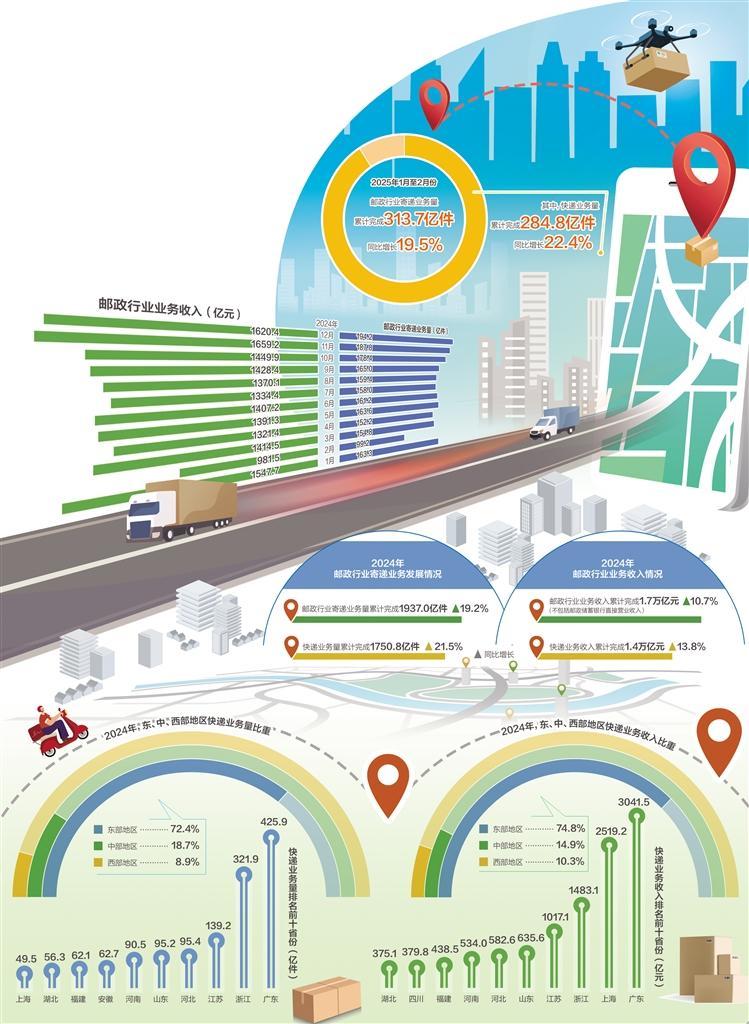 消費(fèi)是經(jīng)濟(jì)增長的主引擎,快遞業(yè)務(wù)增長源于消費(fèi)需求有效釋放。從中央經(jīng)濟(jì)工作會(huì)議強(qiáng)調(diào)大力提振消費(fèi)、提高投資效益,全方位擴(kuò)大國內(nèi)需求,到今年《政府工作報(bào)告》圍繞“大力提振消費(fèi)”作出工作部署,再到各級(jí)政府和有關(guān)部門加碼促消費(fèi),消費(fèi)市場活力持續(xù)攀升。2025年,消費(fèi)潛能將加速釋放,快遞業(yè)仍將保持穩(wěn)步上升態(tài)勢,更多人會(huì)享受到便捷的寄遞服務(wù)。 (本文來源:經(jīng)濟(jì)日報(bào) 作者:吉蕾蕾)