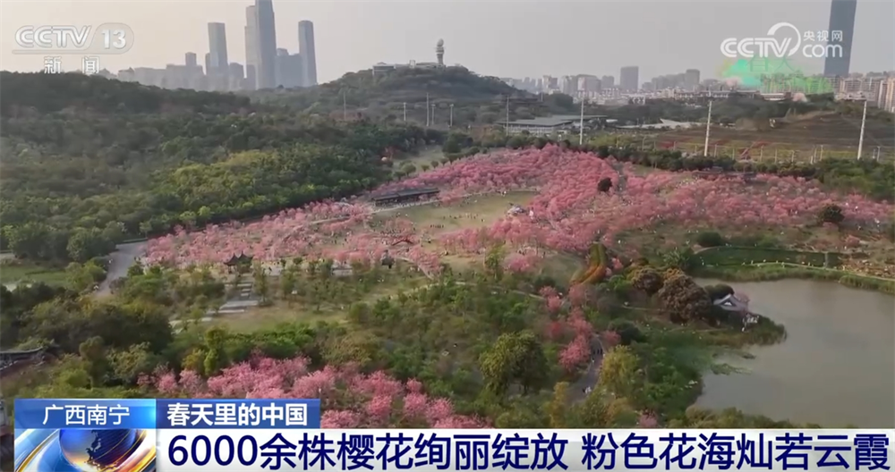 廣西南寧:6000余株櫻花絢麗綻放 粉色花海燦若云霞