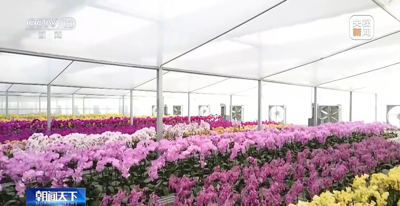 工作人員告訴記者,蝴蝶蘭大世界安裝了200多個智能傳感器,采用5G物聯(lián)網(wǎng)技術,精準調(diào)控溫度、濕度、光照、通風等生長因素,可以實現(xiàn)“定時開花”。