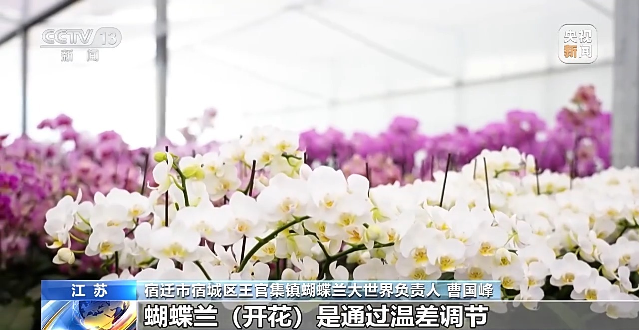 宿遷市宿城區(qū)王官集鎮(zhèn)蝴蝶蘭大世界負責人 曹國峰:其實蝴蝶蘭的自然花期應該是農(nóng)歷年開始一直到“五一”,這是自然狀態(tài)。現(xiàn)在我們通過技術干預,想哪一天開就哪一天開。蝴蝶蘭開花是通過溫差調(diào)節(jié),這個時候我們就要用空調(diào),一些恒溫設備以及除濕設備進行恒溫控制。