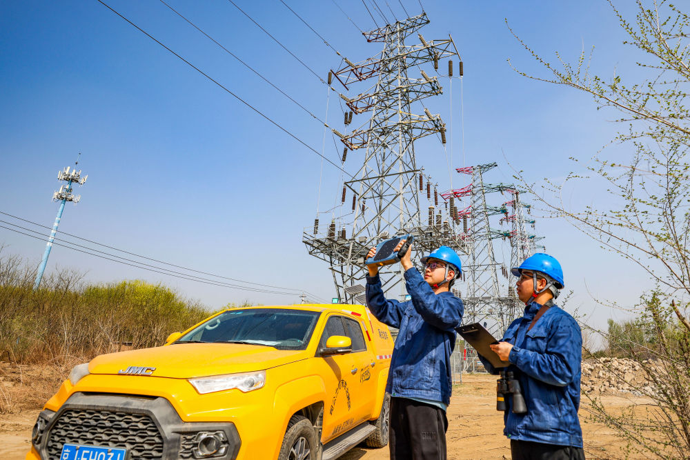 4月10日,國(guó)網(wǎng)北京昌平供電公司員工在陽(yáng)坊鎮(zhèn)溫南路對(duì)重點(diǎn)線路開展特巡。(國(guó)網(wǎng)北京分公司供圖)