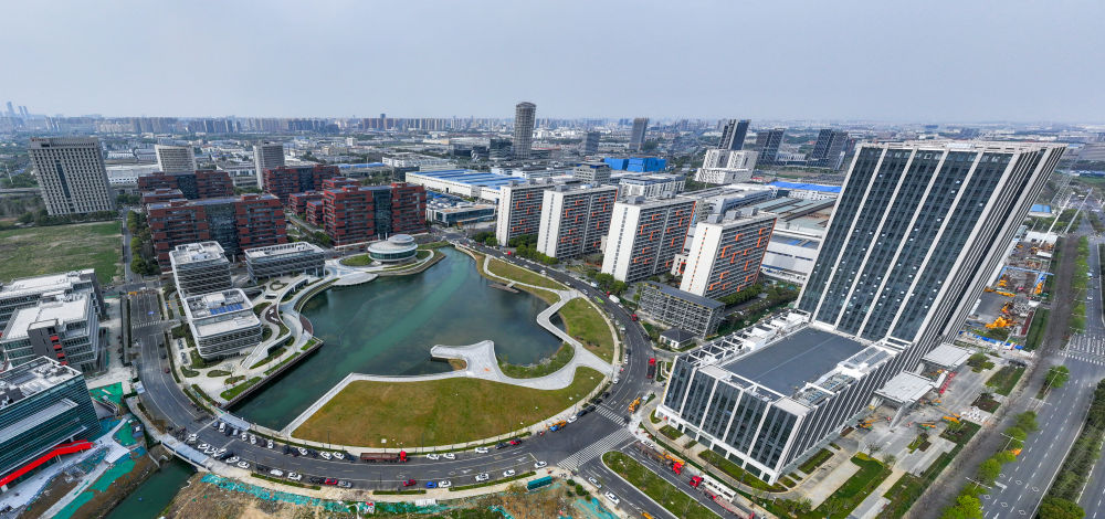 這是3月31日拍攝的無(wú)錫(經(jīng)開區(qū))智能網(wǎng)聯(lián)汽車生態(tài)產(chǎn)業(yè)園(無(wú)人機(jī)全景照片)。新華社記者 李博 攝