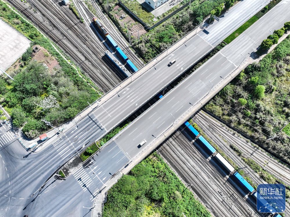4月20日,圖定中亞班列在重慶團(tuán)結(jié)村中心站順利發(fā)車(無人機照片)。