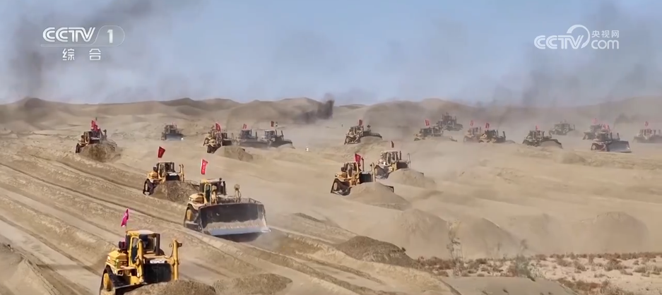 在位于塔克拉瑪干沙漠南緣的新疆昆玉市,7.38萬(wàn)畝土地開(kāi)發(fā)建設(shè)項(xiàng)目進(jìn)入攻堅(jiān)階段。上百臺(tái)裝載機(jī)、平地機(jī)在沙海中來(lái)回奔忙,原本丘壑縱橫的流動(dòng)沙丘經(jīng)過(guò)連續(xù)作業(yè),逐漸變得平整,顯露出田壟的輪廓。