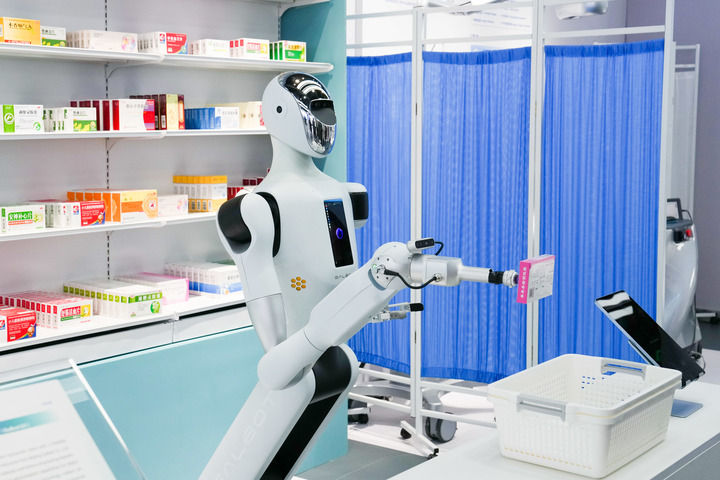 2025年2月24日,在北京“機器人大世界”的應(yīng)用場景示范區(qū),銀河通用機器人進行藥店無人值守場景演示。