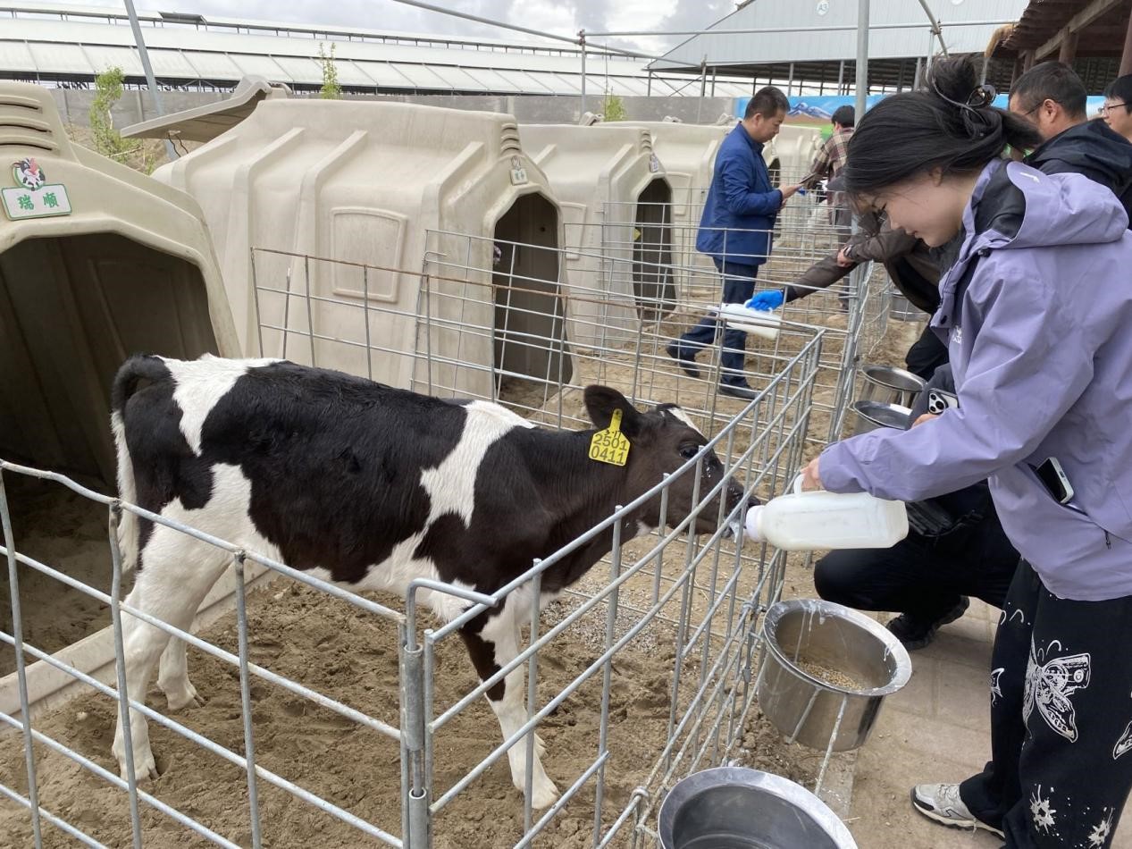 圖為天瑞祥牧場研學(xué)基地,游客在體驗給小牛喂奶。冶明偉攝