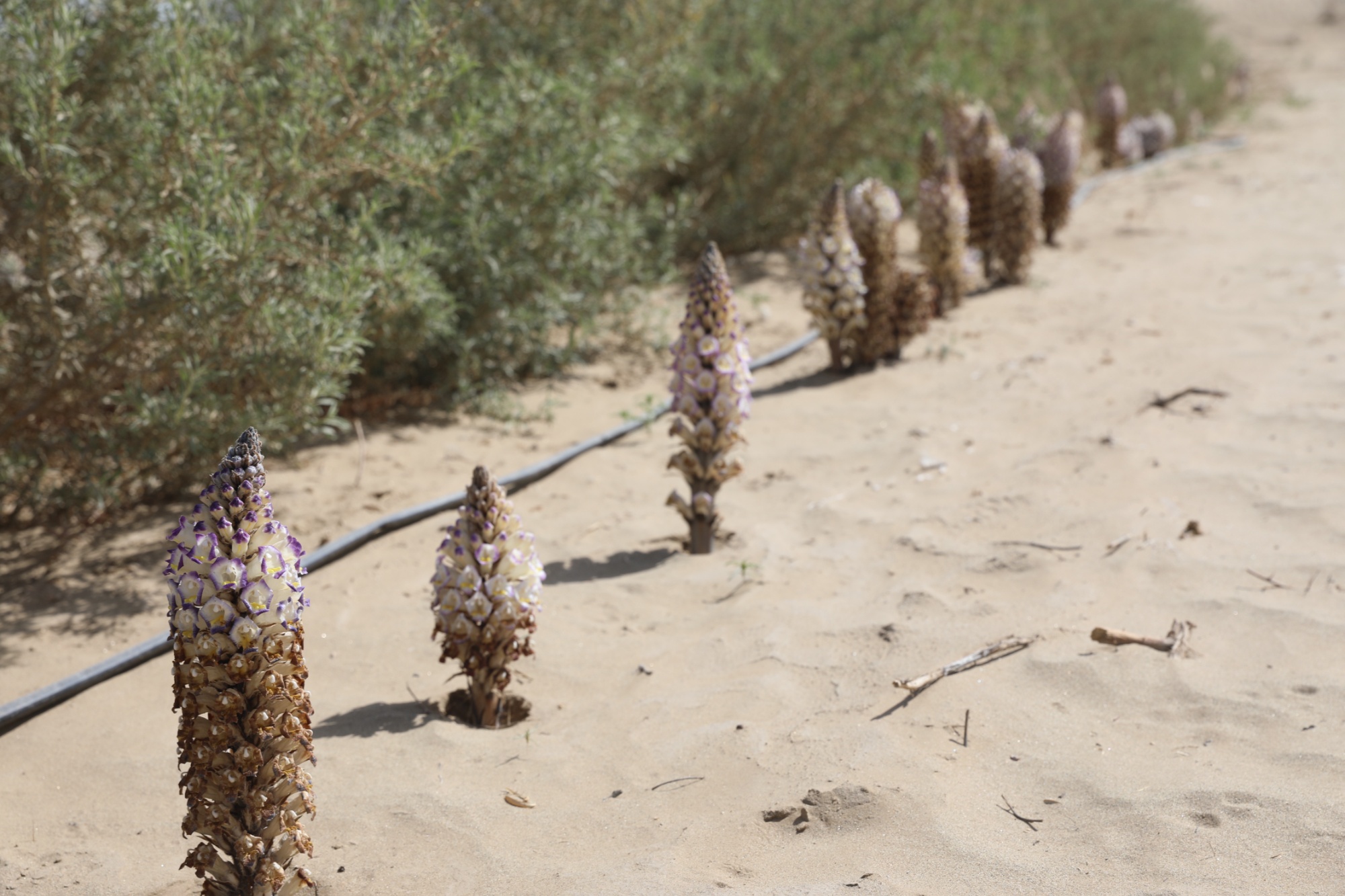 風(fēng)沙漸退,綠意初顯。在墨玉縣的沙田上,各種防沙農(nóng)作物正迎著陽(yáng)光生長(zhǎng),它們承載著防沙治沙的希望,將“沙窩子”孕育成“聚寶盆”。(日孜完古麗·買吐地)