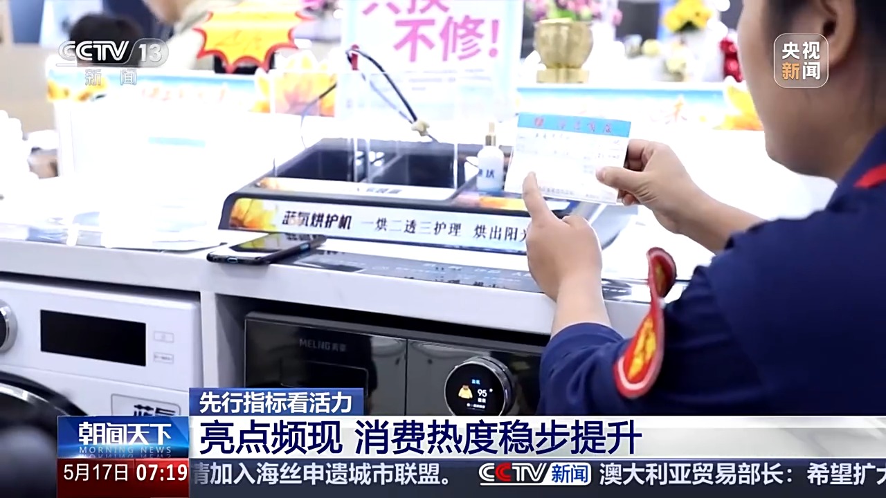 國(guó)家信息中心今天(17日)發(fā)布了一系列先行指標(biāo),記者從中發(fā)現(xiàn),4月份以來,在一系列宏觀政策協(xié)同發(fā)力下,消費(fèi)、投資、工業(yè)生產(chǎn)等多領(lǐng)域保持向好態(tài)勢(shì)。