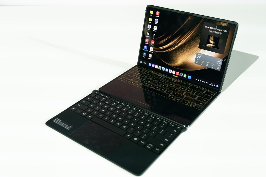 圖為5月19日發(fā)布的HUAWEI MateBook Fold非凡大師實(shí)體鍵盤(pán)與虛擬鍵盤(pán)。新華社記者 胥冰潔 攝