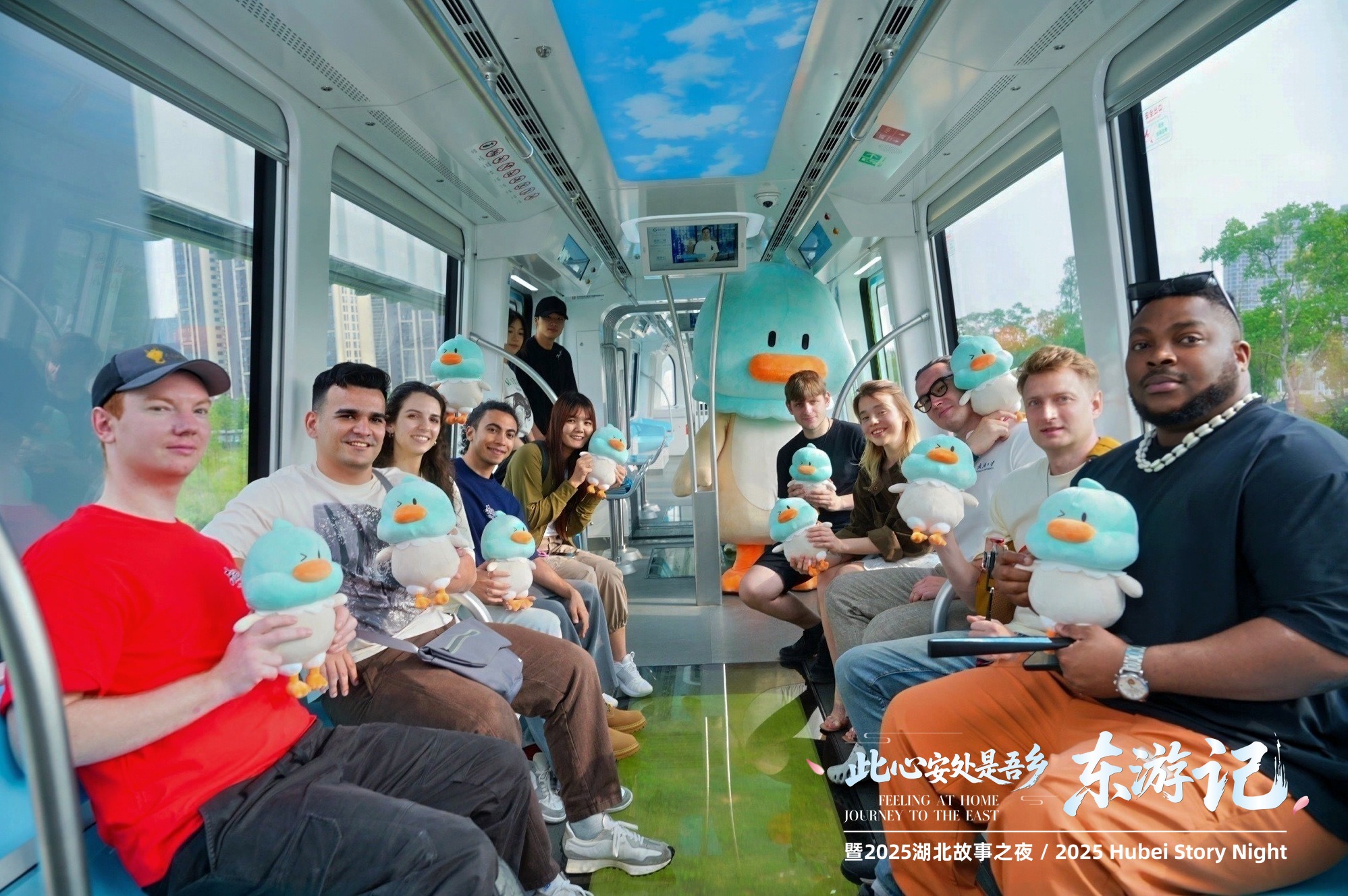 武漢新晉網(wǎng)紅打卡地怎么少得了光谷空軌,在吉祥物青青鴨的帶領(lǐng)下,體驗(yàn)官們踏上了空中交通之旅。270°全景視窗將城市天際線變成流動(dòng)畫卷,無(wú)人駕駛系統(tǒng)在空中穿行如科幻大片。這種新奇的乘車體驗(yàn)引得大家連連贊嘆,俄羅斯留學(xué)生可欣興奮的說(shuō),“我感覺(jué)自己飛起來(lái)了,像鳥(niǎo)一樣飄在空中。”