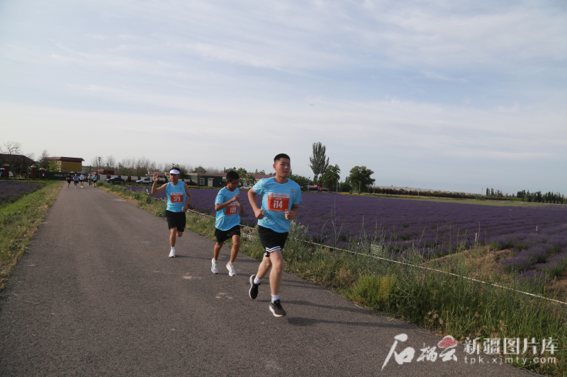 5月31日,霍城縣“2025蘇韻伊情·霞路相逢(霞2·芳香霍城)商學(xué)院越野接力賽”開跑。圖為參賽選手跑過一片薰衣草園。石榴云/新疆日?qǐng)?bào)記者 宋衛(wèi)國(guó) 攝