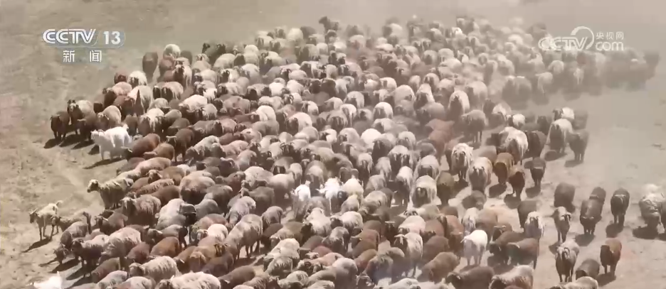 在新疆阿勒泰福??h的沙爾布拉克草原,當(dāng)?shù)啬撩翊┲恋奶厣?,帶著家?dāng),趕著牛羊,正在進行轉(zhuǎn)場。今年有45萬頭的牛羊經(jīng)過沙爾布拉克草原千年牧道,轉(zhuǎn)場到水草豐美的夏牧場。