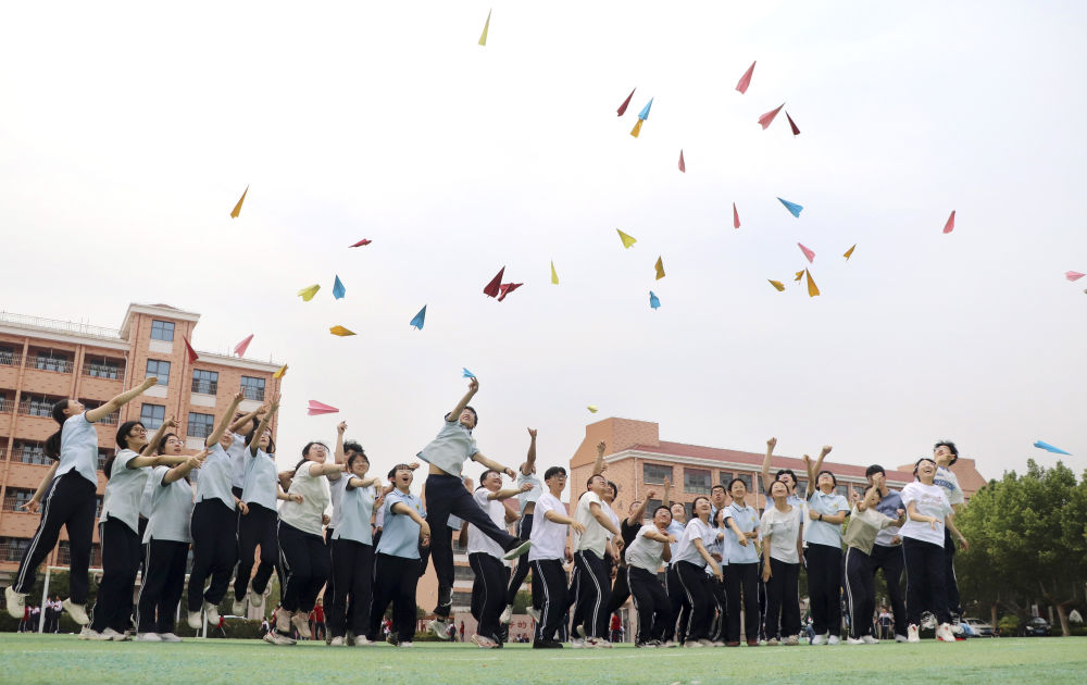 5月22日,在山東省高密市第五中學(xué),高三學(xué)生將寫有夢(mèng)想的紙飛機(jī)拋向空中。