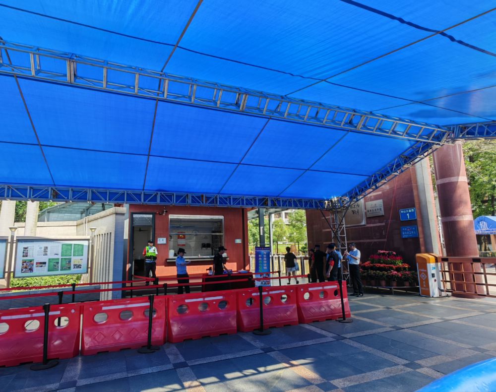 在廣州,華南師范大學附屬中學考點前的保障人員早早就位。考點所轄派出所派出工作人員現(xiàn)場維持秩序,交警疏導交通,讓考生進考場的通道更加清晰有序??键c為考生準備了午餐,考生可購買飯票就餐,并在考點安排的教室午休。