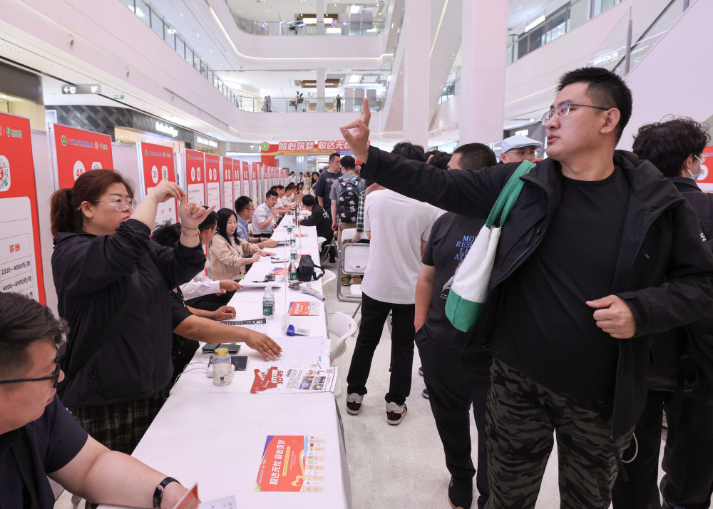 5月8日,在浙江省嘉興市南湖區(qū)零工市場(chǎng)的一場(chǎng)零工招聘會(huì)上,求職者查看各類崗位。新華社記者 徐昱 攝