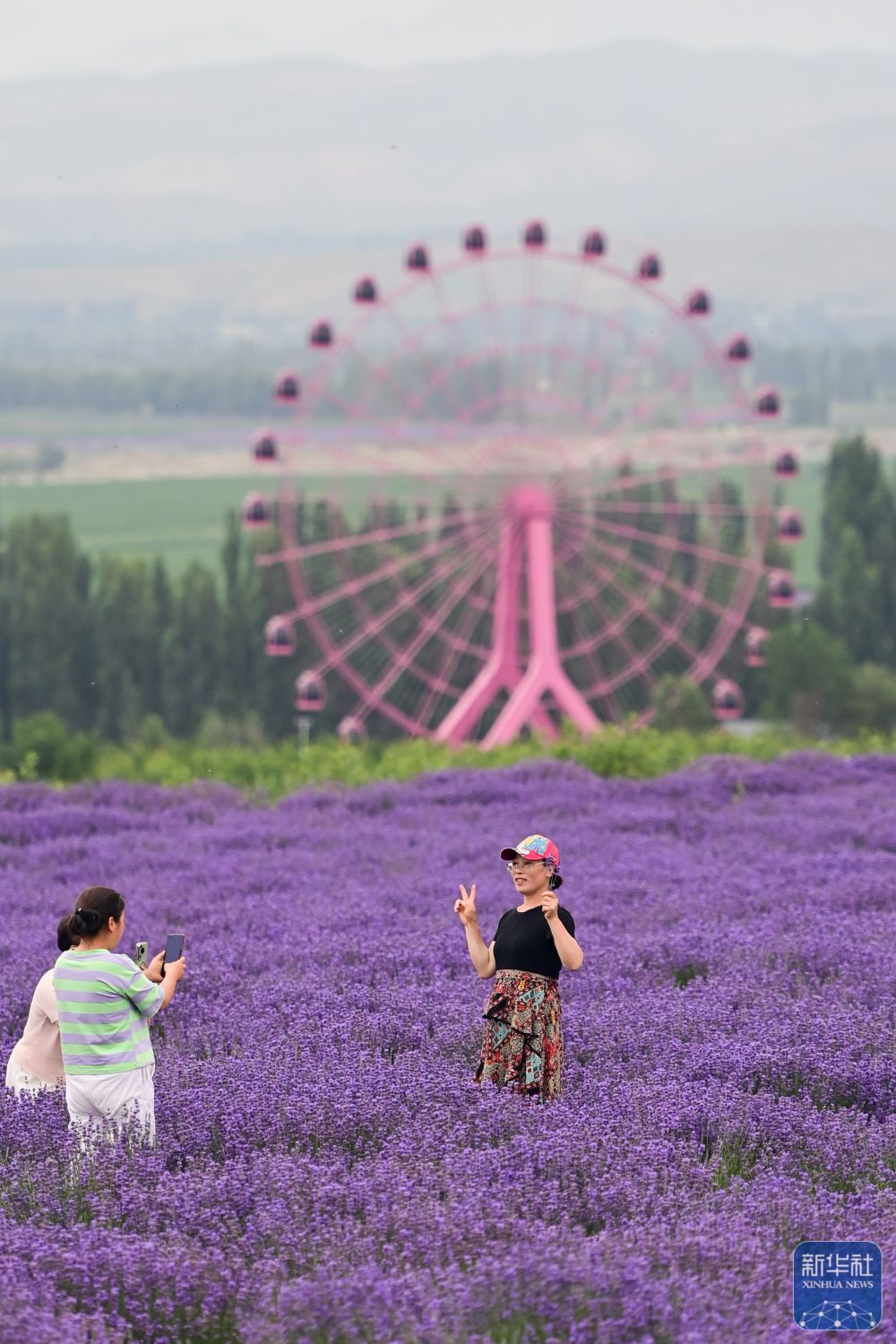 游客在新疆伊犁哈薩克自治州霍城縣解憂公主薰衣草農(nóng)場游玩(6月14日攝)。