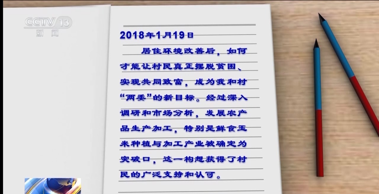 2018年1月19日工作日記:居住環(huán)境改善后,如何讓村民真正擺脫貧困、實現(xiàn)共同致富,成為我和村“兩委”的新目標。經過深入調研和市場分析,發(fā)展農產品生產加工,特別是鮮食玉米種植與加工產業(yè)被確定為突破口,這一構想獲得了村民的廣泛支持與認可。