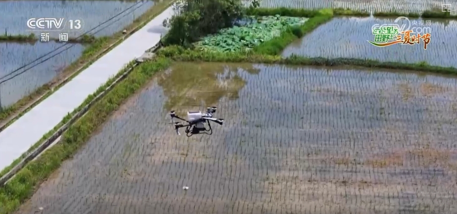 在另一塊稻田里,植保無人機正在對剛插好的稻苗噴灑肥料。農(nóng)場負責人表示,單季稻插秧后3—7天,就需要根據(jù)稻苗返青和分蘗的情況施肥,以促進它的生長。用無人機施肥可精準控制用量,一天能管200多畝,同時,還能節(jié)省30%的肥料。