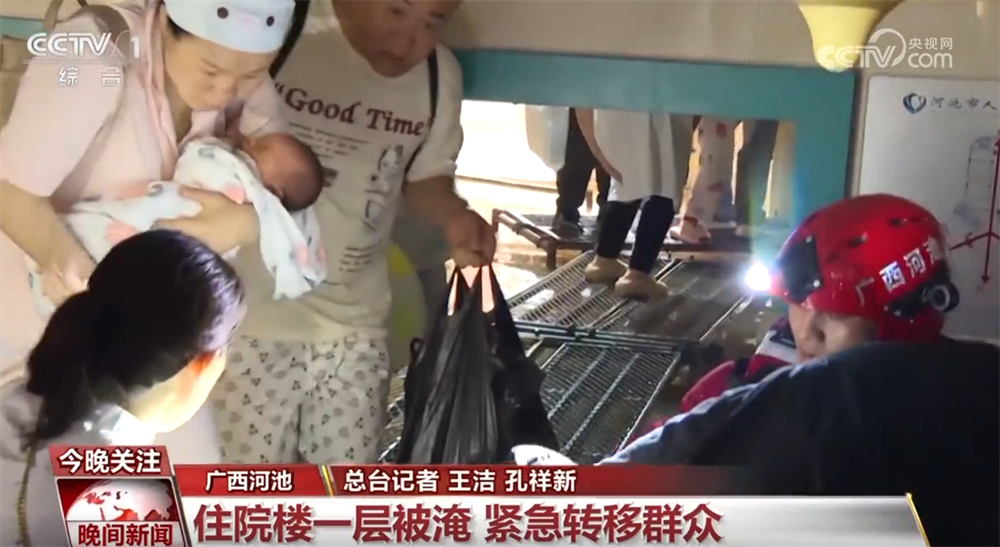 這兩天,廣西河池多地遭遇強降雨天氣。河池市人民醫(yī)院住院部大樓一層出現(xiàn)嚴重積水,幾百名住院的病人和陪護家屬需要轉(zhuǎn)移,救援人員迅速行動起來。