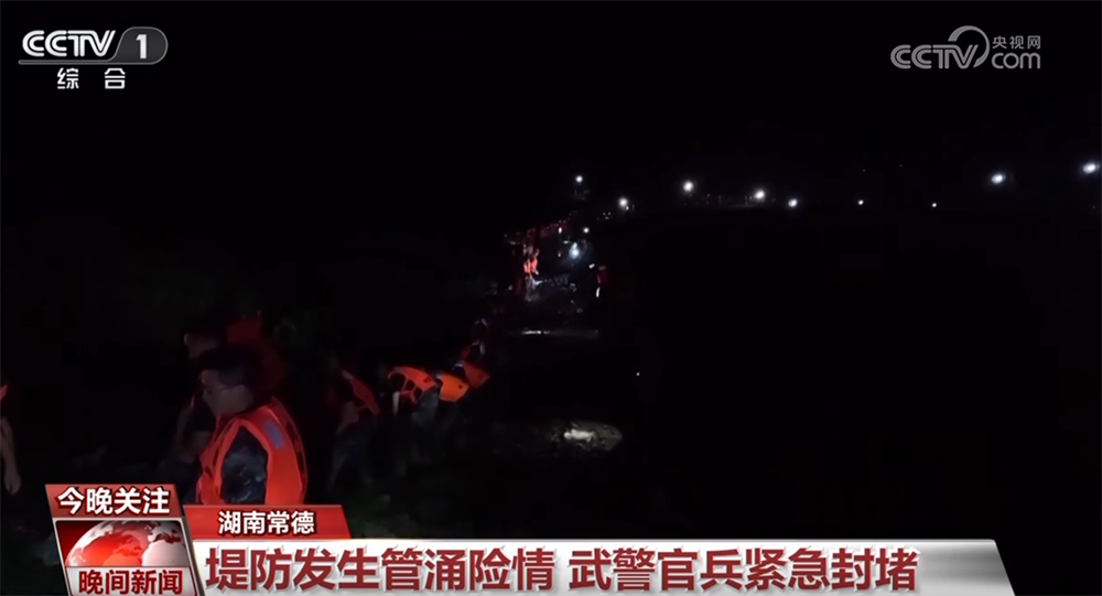 22日凌晨2點半,武警常德支隊官兵抵達現(xiàn)場,大家腳踩鐵鍬、手托麻袋,采取鏈路傳遞的方式,把沙袋源源不斷運到管涌處。截至22日晚上8點,管涌群封堵完畢。武警官兵仍堅守一線,與地方應(yīng)急、水利、氣象等部門保持緊密聯(lián)系,妥善應(yīng)對下一步險情排查和科學(xué)處置。