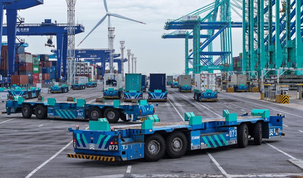 天津港第二集裝箱碼頭一景(無人機照片)。新華社記者趙子碩 攝