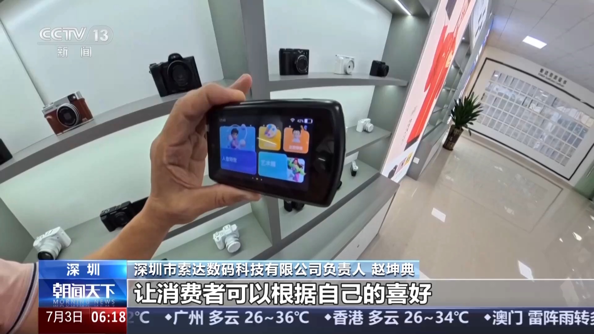 深圳市索達(dá)數(shù)碼科技有限公司負(fù)責(zé)人 趙坤典:傳統(tǒng)相機(jī)強(qiáng)調(diào)的是光學(xué)變焦,還有畫質(zhì)。我們現(xiàn)在引進(jìn)AI的功能,讓消費(fèi)者可以根據(jù)自己的喜好做出各種各樣的創(chuàng)意編輯。找到一條彎道超車的路子。