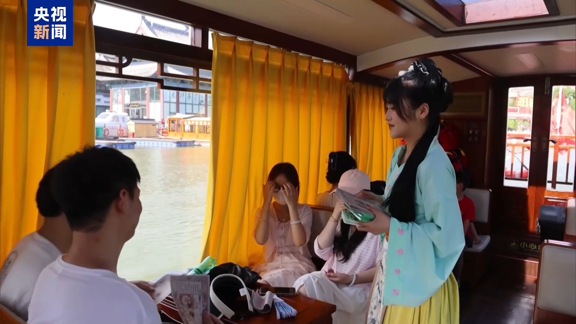 在河南開封,游客能坐船體驗“宋朝人的一天”,船上設有互動詩詞小游戲,市內(nèi)的八大景區(qū)通過汴河水道“串珠成鏈”,吸引游客參與其中。