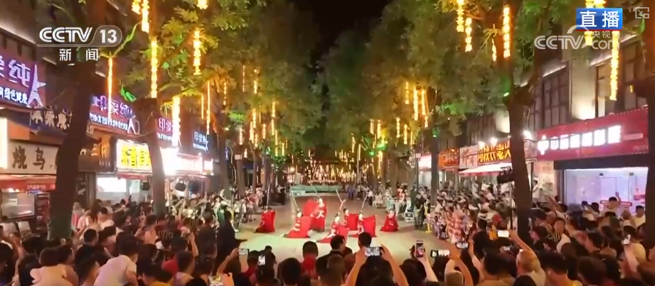 隨著暑期旅游旺季的到來,各種演藝活動也在熱火朝天地開展中。比如主打二十世紀(jì)八九十年代風(fēng)格的老糖酒文化街區(qū),每天上演風(fēng)格明顯的年代秀和歌舞表演,在渭河和咸陽湖的水面上還可乘船游覽觀賞水幕光影秀。