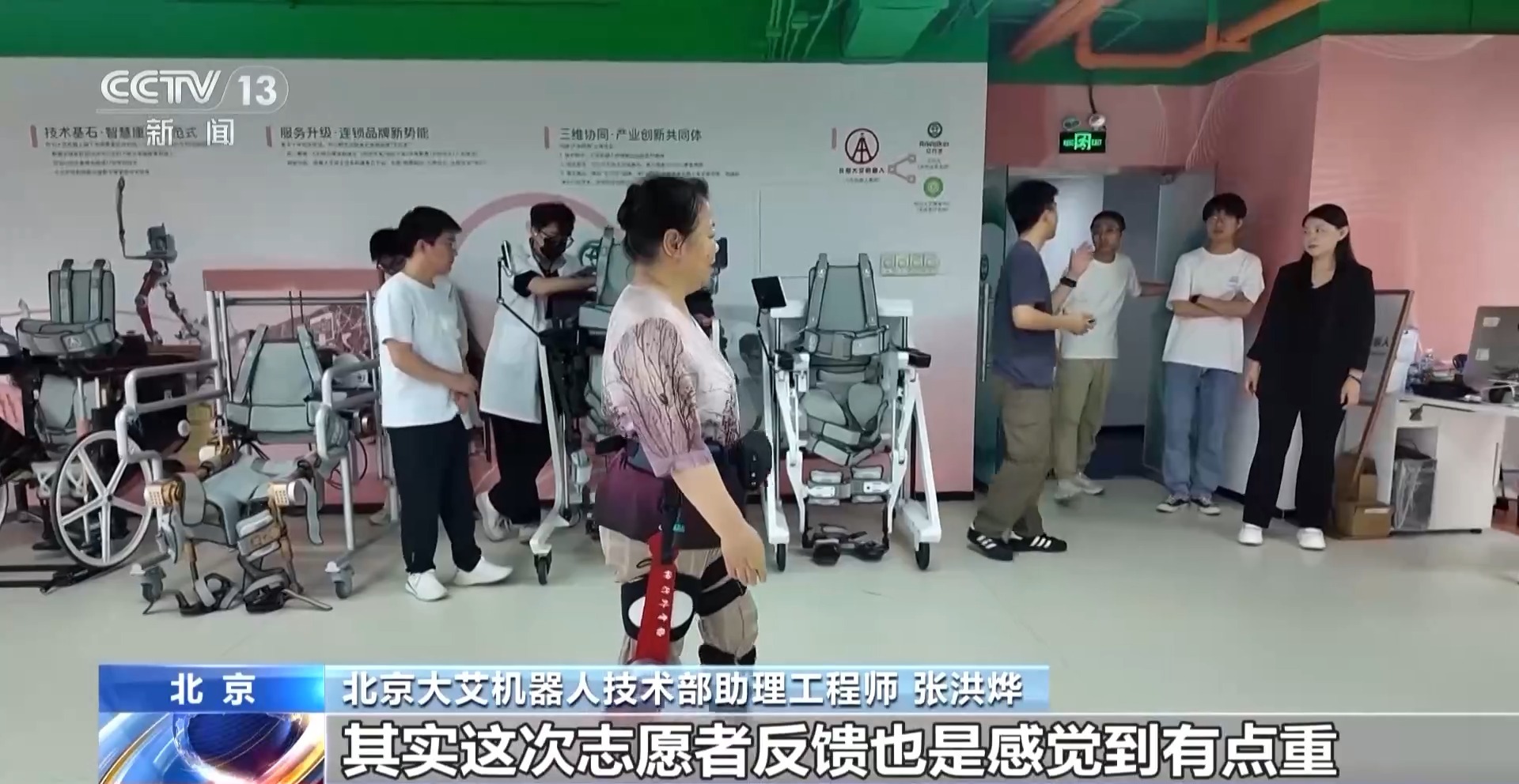 北京大艾機(jī)器人技術(shù)部助理工程師 張洪燁:在穿戴方面,老人其實(shí)更希望是讓它更簡(jiǎn)單、更易上手,能自己獨(dú)立完成穿戴。在配重方面,其實(shí)這次志愿者反饋也是感覺到有點(diǎn)重,我們后續(xù)應(yīng)該是再減重。