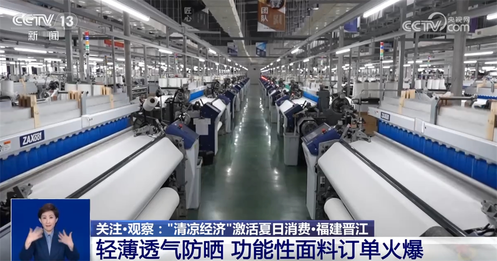 除了旅游消費(fèi),盛夏時(shí)節(jié),防曬產(chǎn)品也迎來銷售旺季。在福建晉江,這里的多家服裝生產(chǎn)或紡織面料企業(yè)生產(chǎn)的涼感、速干、驅(qū)蚊、防曬等功能性面料訂單火爆,備受市場青睞。
