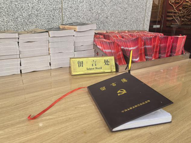 “我們每天平均接待觀眾2000多人,不少人喜歡把自己參觀完的感受寫在留言冊上?!迸碚嫔紧咧泄蔡Р颗f址紀(jì)念館館長郭志軍介紹,每年的6-8月是參觀高峰,一些參觀者在結(jié)束觀展后,將自己的感觸寫到留言冊上,留言的方式也各不相同,有的用書法,有的畫畫,都在表達(dá)對祖國和山西的祝福。