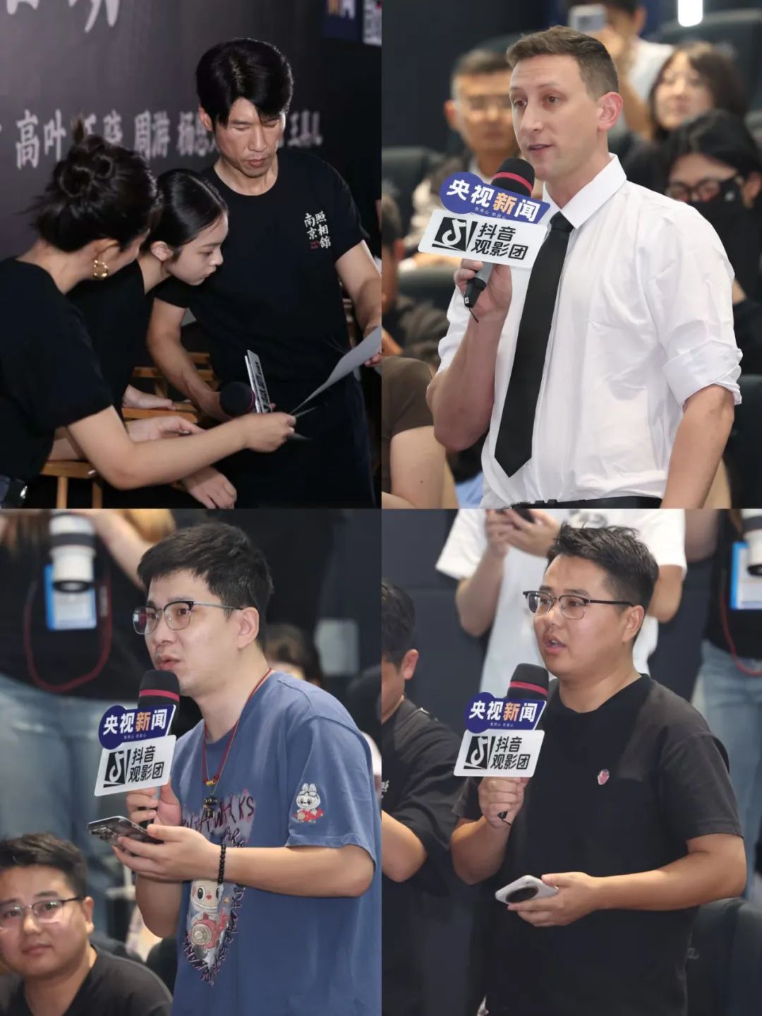 影片導(dǎo)演申奧,演員劉昊然、王傳君、高葉、王驍、楊恩又、王真兒來(lái)到央視新聞?dòng)^影團(tuán)現(xiàn)場(chǎng),與觀眾進(jìn)行互動(dòng)。二戰(zhàn)相冊(cè)捐贈(zèng)者埃文·凱爾,也受邀來(lái)到活動(dòng)現(xiàn)場(chǎng),共同觀影交流。